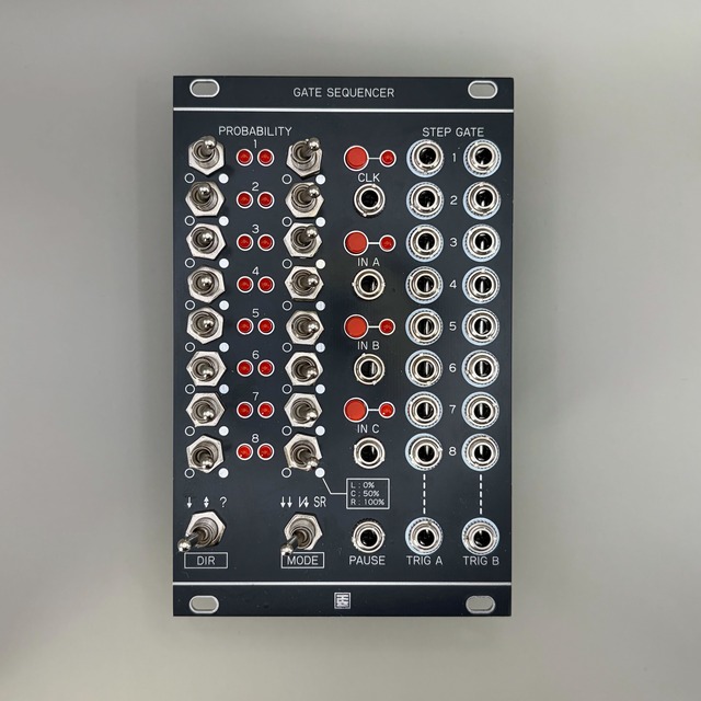 Gate Sequencerは、トグルスイッチ式の多機能ゲートシーケンサーです。 ・独立した2つのクロックで動く8 Stepシーケンサー x2 ・パフォーマンス機能を備えた16 Stepシーケンサー ・可変長・経路変更可能なシフトレジスタ (Turing Machine) の3つの機能を備え、スイッチ一つで切り替えて使用できます。 [仕様] フォーマット:Eurorack 幅:16 HP 奥行き:25 mm 消費電流:+12V: 50mA / -12V: 0mA マニュアル、回路図はgithubで公開しています。 https://github.com/StudioKAT/GateSequencer.git